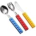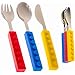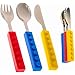 Toddler Utensils and Brick Toys - Set of 3 Interlocking Block Kids Silverware - Toddler Fork and Spoon Set with Toddler Knife for Kids - Non-BPA Kids Cutlery and Kid Safe Stainless Steel Silverware