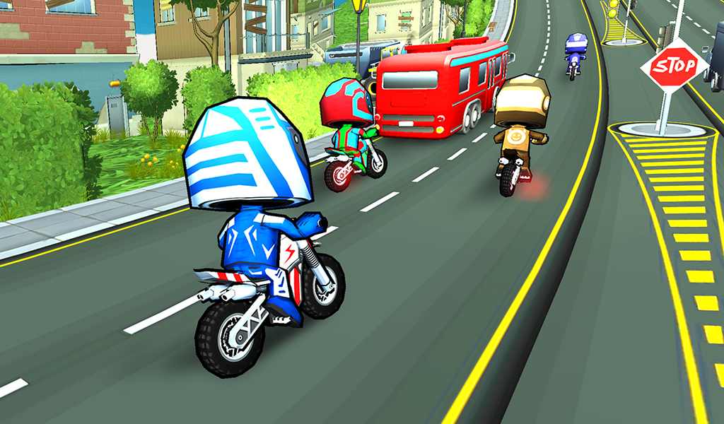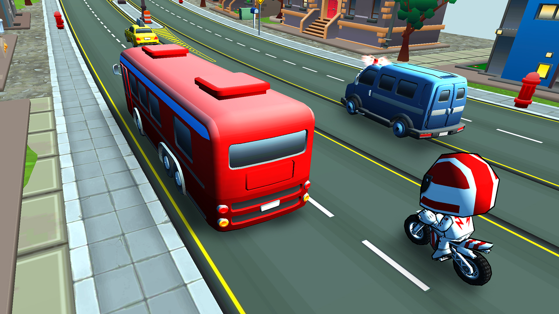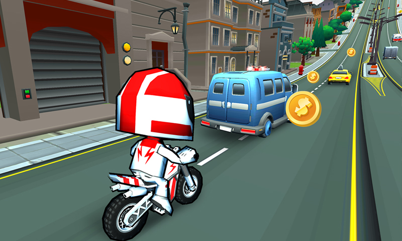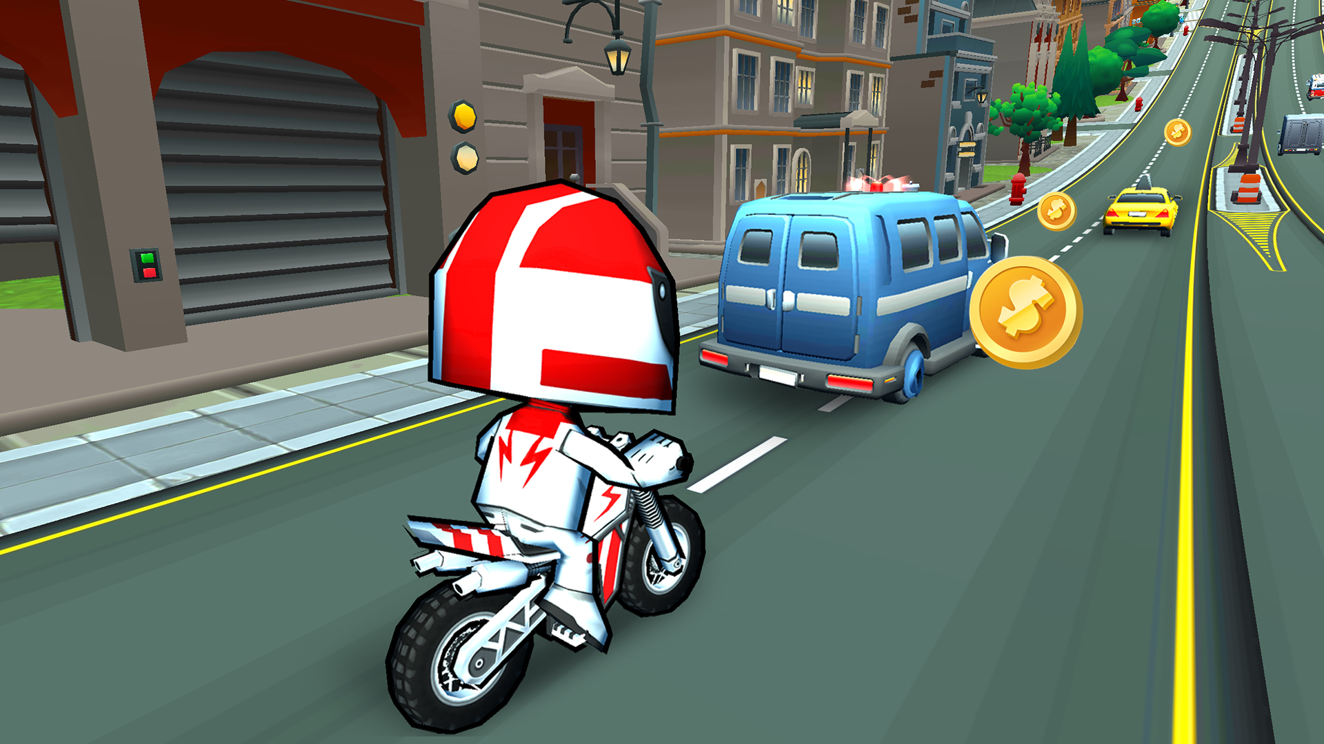 Bike Racer 3D takes the endless racing genre to a whole new level by adding a full career mode, first person view perspective, better graphics and real life recorded bike sounds. The essence of smooth arcade racing is still there but in the shell of the next generation. Ride your bike in the endless highway roads overtaking the traffic, upgrade and buy new bikes to beat the missions in career mode.