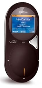 TrekStor vibez (72930) 12GB new oval shaped slender and elegant MP3 player offers unique features. The palm-sized vibez features a 1.5" full color TFT screen with non-slip casing and is powered by a long-life Lithium-ion rechargeable battery that provides up to 20 hours of play. The vibez is housed in a compact, stainless steel case with removable rear cover. This allows for easy low-cost replacement of the battery, eliminating a major consumer concern. The vibez can be upgraded to include an FM tuner (with an optional FM tuner card).