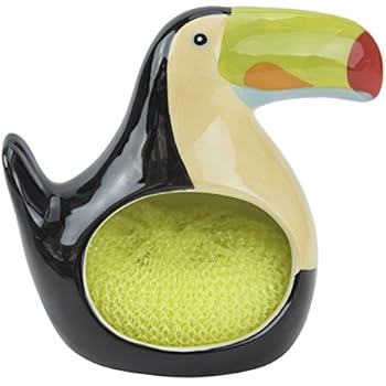 Toucan Scrubby Holder and Non-Scratch Scrubby, Hand Painted Ceramic, By Boston Warehouse