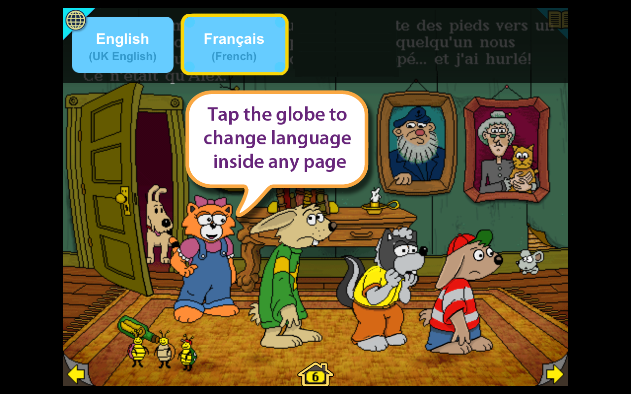 KEY FEATURES: • Interactive storybook with 12 fully animated pages in British English and French • Virtually every item on each page comes to life when clicked • All words are "active" for extended word play and language learning – click on any word to hear it spoken • Animated surprises on each page – can you find the spider? • Move between pages with the new scrolling page navigation • Two modes: "Read to Me" and the fully interactive "Let Me Play", with multiple settings to customize the App for your child’s reading experience • Parental tips to help you get the most out of this Wanderful interactive storybook • Teacher resources include a 33 page overview of Wanderful Classroom Activities and a free preview of the Harry and the Haunted House Classroom Activities guide • The full 58 page Classroom Activities guide is also available