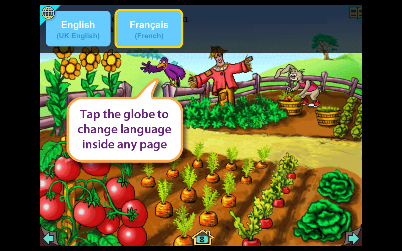KEY FEATURES: • Story is in both UK English and French - change language from any page • Over 500 interactive words in each language • 12 fully interactive pages of word play • Virtually every item on each page comes to life when tapped • A hidden animated surprise on each page - see if you can find Ruppert the dragonfly • Move between pages with swipe or with scrolling page navigation • Multiple settings to customize the App for your child's reading experience • Two modes: "Read to Me" and the fully interactive "Let Me Play" • Parental tips to help you get the most out of this Wanderful interactive storybook • Learning resources include a 31 page overview of Classroom Activities and a free preview of the Tortoise and the Hare Classroom Activities guide • The full 47 page Classroom Activities guide is also available