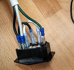 3 pin IEC320 C14 plug, 7 terminals, is used widely in lab equipment, fitness equipment, industrial automation equipment, etc. Use only with a 250V fuse.