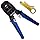 -Insert the clip into the center (8P) of the crimper, tab up, careful not to pull the wires out. Squeeze the crimper and the chrome slide will go up to force the gold tabs up into the individual wires, piercing them and making the connection. Depress the tab on the clip and remove it from the crimper