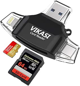 - 【 4 in 1 Memory Card Reader 】:VIKASI Card Reader fit all your devices with four interfaces: Lightning connector is for iOS devices; Micro USB connector is for Android devices; USB connector is for computers/Macs, New Type c device.