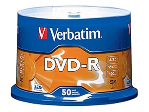 This item: Verbatim 4.7GB up to 16x Branded Recordable Disc AZO DVD-R 50-Disc Spindle 95101