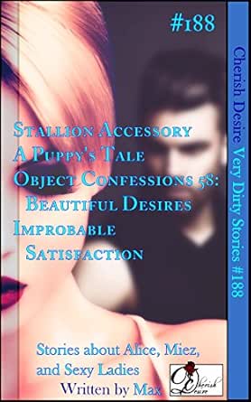 Isn't it about time for men to live up to their ladies sexy fantasies? ★★★★★ "Alice definitely knows how to give her men a sexy purpose!"★★★★★ "Miez's puppy legion... this just got REAL!"★★★★★ "Max's twisted imagination delivers another demented fantasy!"★★★★★ "Ovipositor... eggs... this whole Aliens fetish is scandalous!"Provocative and tantalizing, forbidden desires thrill these sexy ladies as they pursue pleasure with unusual toys and lusty passions to satisfy brazen cravings! Very Dirty Stories delivers short stories full of uncensored action to inspire hot fantasies. Don’t think of it as proof of your inadequacy. Mistress Alice desperately deserves a man hung like a horse. "Stallion Accessory (An Alice Story)" [Includes: FFM, D/s, Femdom, Dildo Play & Wearing, Vaginal & Oral & Anal Penetration, Double Penetration, Strap-on Sex, Implied Anal Sex, Canine & Equine, Implied Fisting, Submissive Male, Pegging, Threesome] Sheathed in a silicon sex toy, dressed in his puppy gear and latex shorts, Miez finally has exactly what she desired. Can she torment him by emphasizing how much more she will want next? "A Puppy's Tale (A Miez Story)" [Includes: FM, Femdom, D/s, Dildo Play & Wearing, Fingering & Fisting, Vaginal & Anal Penetration, Anal Sex, Implied Double Penetration, Rubber & Latex Wear, Puppy Play, Submissive Male, Pegging, Canine, Stretching] It was hard to be happy when she could only see her flaws. It’s much easier knowing that her body modifications serve a purpose greater than vanity as she seeks mutual pleasure. "Object Confessions 58: Beautiful Desires" [Includes: MF, Vaginal & Oral & Anal Sex, Fingering & Fisting & Double Fisting, Body Modification, Surgical Enhancement, Double Penetration, Stretching, Implied D/s, Implied Punishment Play, Implied Tattoo] The lusty fantasies of a dragon lover become more maternal as she looks over her clutches of silicon eggs. Improbable temptations inspire ovipositor desires. "Improbable Satisfaction" [Includes: Female Masturbation, Dildo Play & Wearing, Dragon, Double Penetration, Vaginal & Oral & Anal Penetration, Stretching, Phone Sex, Implied Breeding Play] Approximately 11,000 words.Bonus: Plus selections from our Winter 2015 catalog with commentary.This book is intended for mature audiences. Cherish Desire books contain erotica adventures featuring intense sexual situations including alternative lifestyles, perverse pleasures, and supernatural lust. Find more sexy madness in our Catalog. http://bit.ly/CherishDesireCatalog Featuring Alice: http://bit.ly/Ladies_Alice Featuring Miez: http://bit.ly/Ladies_Miez Featuring the Ladies of Object Confessions: http://bit.ly/Ladies_ObjectConfessions Featuring Affections of the Wulf: http://bit.ly/Ladies_JournalOfTheWulfBuy Now and Seek Scandalous Satisfaction!