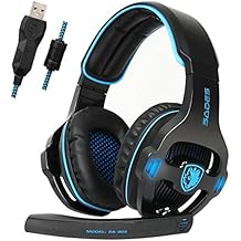 SADES SA901 7.1 Surround Stereo Pro USB Gaming Headset with Mic Deep Bass Headband Headphone (Black Blue)