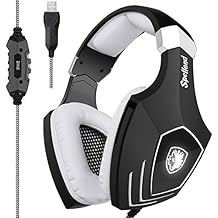 [2017 Newly Updated USB Gaming Headset] SADES A60/OMG Computer Over Ear Stereo Headsets Heaphones With Microphone Noise Isolating Volume Control LED Light (Black+White) For PC And MAC