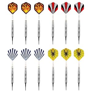 - Comprised of high quality 12 pack 17 Grams Practice Plastic Soft Tip Dart Set, 4 style flights, 24 pieces 24 Soft Tip Points, 12 lightweight, convex nylon shafts