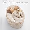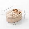 3”oval x 1.5”h hand-painted resin box. Bas-relief carving of older figure in cream dress, holding up baby in cream onesie on lid (not attached) fitted to a cream, oval box.