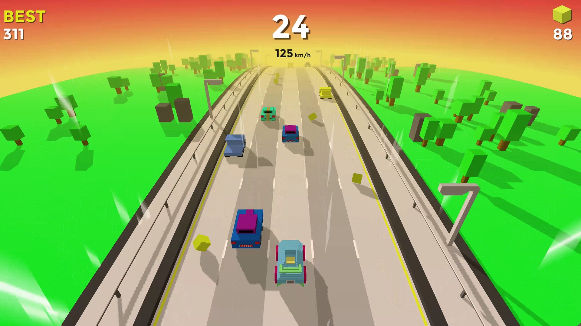 Switch lanes side to side, build your speed and go the furthest in this super fun racing game! Collect money and unlock a tons of awesome looking vehicles!