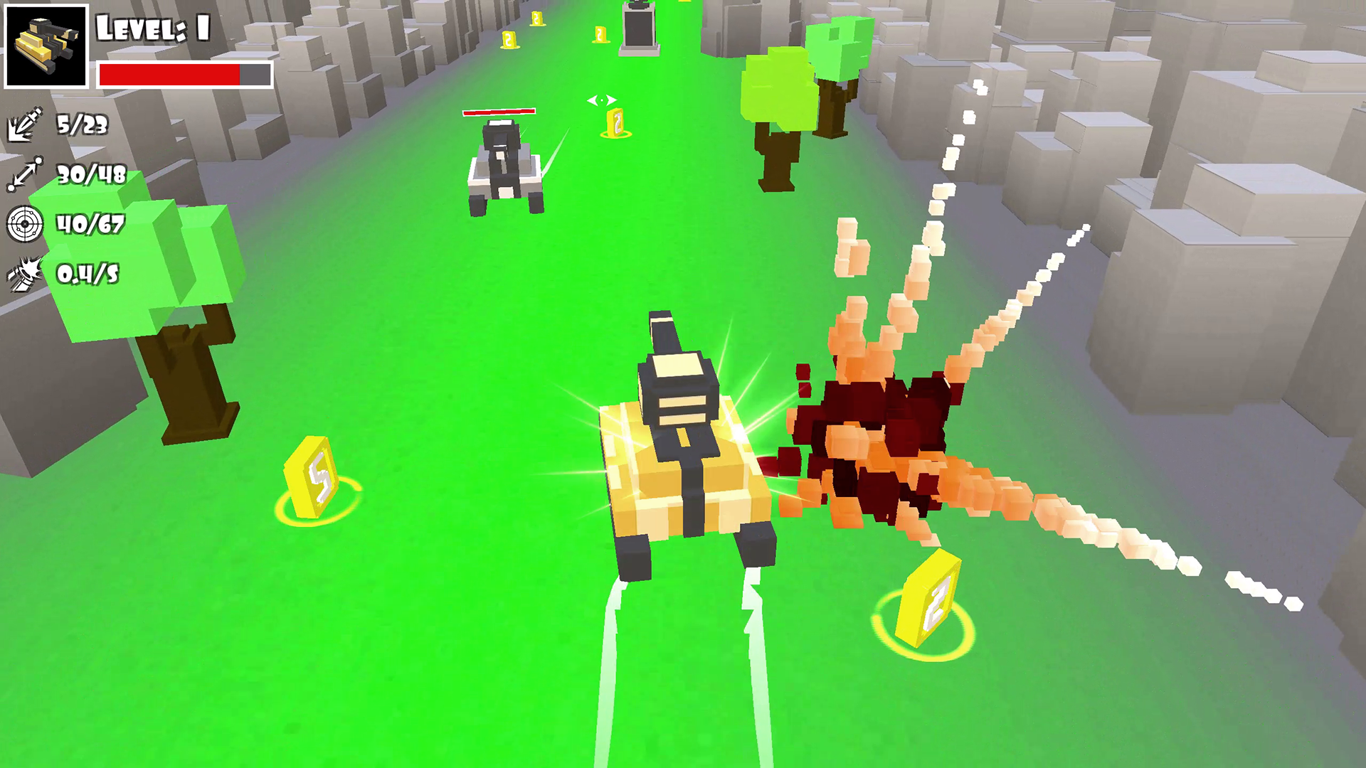 Become the biggest, baddest tank and roll from level to level destroying every enemy in your path! Lots to unlock! Tons of levels and powerups!