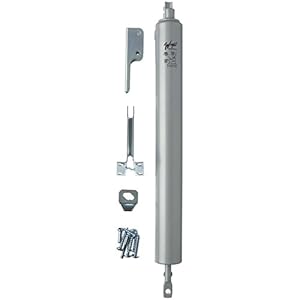 Standard duty pneumatic door closer that can be used alone for light and medium weight doors or in pairs for heavier full view storm doors. Aluminum color painted finish.
