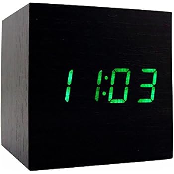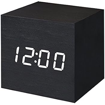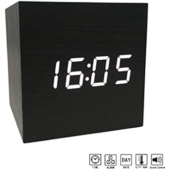 Zeekoo Wooden LED Digital Alarm Clock, Displays Time Date And Temperature, Cube USB/3AAA Battery Powered Sound Control Desk Alarm Clock for Kid, Home, Office, Daily Life, Heavy Sleepers (Black)