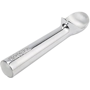 This original Zeroll high-lustre aluminum scoop is comfortable in the right or left hand and won't tire the wrists. It rolls ice cream smoothly into a ball and releases instantly into cone or dish. Not dishwasher safe.