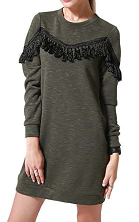 - Features: fashion army green, elegant tassels, round neck, sweatshirt dress, this basic style suitable for anyone to wear