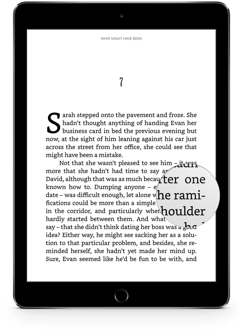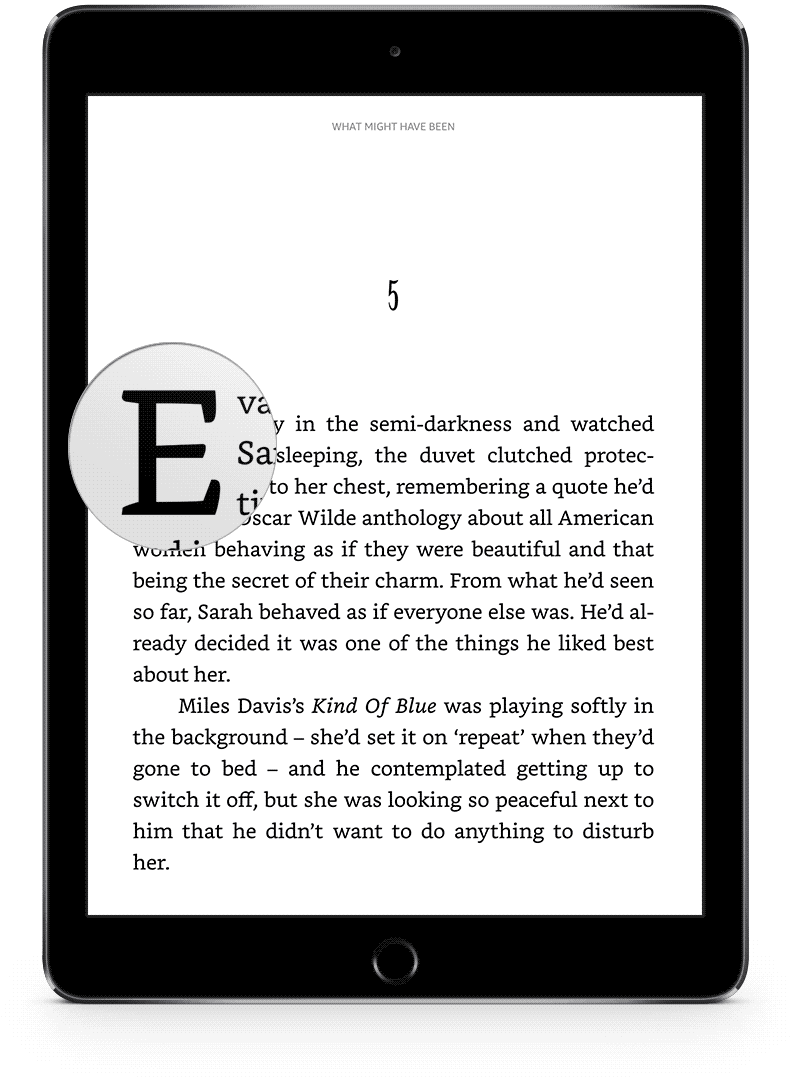 Drop caps, text, and images adapt automatically to look great no matter your screen or font size.