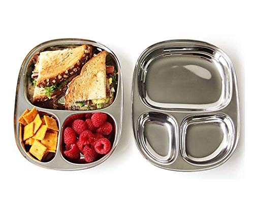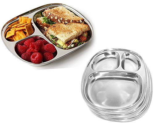 Pack of 2 Stainless Steel Dinner Plate With 4 Section Divided Plate Mess Tray Great For Camping Food Divided Compartment Plate Reusable and Dishwasher Safe - 11.5 inch