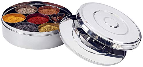 Stainless Steel Spice Box for Spice Organizer With Lid For Kitchenware tools Indian Masala Dabba, Spice Rack, Spice Storage box, Include 7 steel containers for spice and 1 Spoon Indian Spice box
