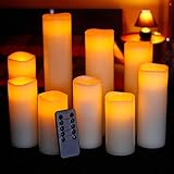 Ry-king 4" 5" 6" 7" 8" 9" Pillar Flickering Flameless LED Candles with 10-key Remote Timer, Set of 9