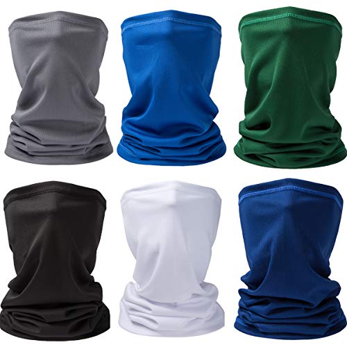 6 Pieces Summer Face Cover UV Protection Neck Gaiter Scarf Sunscreen Breathable Bandana for Men Women (Polyester)