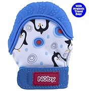 Nuby Soothing Teething Mitten with Hygienic Travel Bag, Blue Penguins