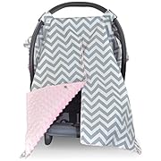 2 in 1 Carseat Canopy and Nursing Cover Up with Peekaboo Opening | Large Infant Car Seat Canopy for Girl or Boy | Best Baby Shower Gift for Breastfeeding Moms | Chevron Pattern with Soft Pink Minky
