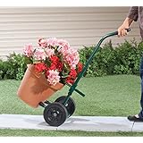 This plant dolly has steel ball bearing casters and five rubber wheels, which can hold 400 pounds. The plant dolly can be used for moving heavy plants, large potted trees, large vases, or heavy trash cans. Measures 16-inch; available in black color.