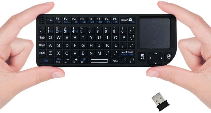 • Award winning FAVI mini keyboard with Touchpad includes qwerty keyboard, multimedia hotkeys, d-pad, laser pointer and touchpad mouse