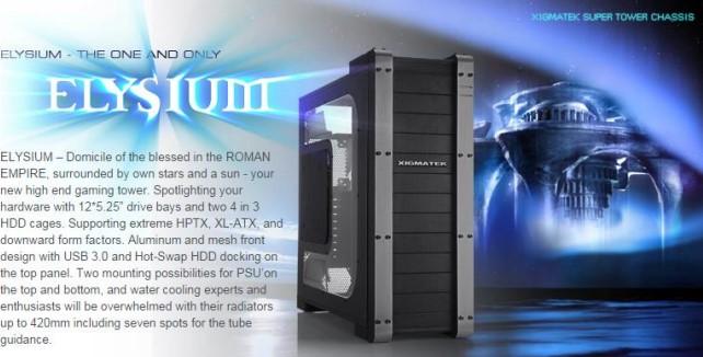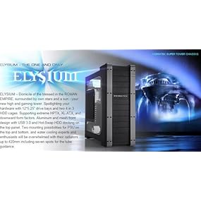 ELYSIUM - Domicile of the blessed in the ROMAN EMPIRE, surrounded by own stars and a sun - your new high end gaming tower. Spotlighting your hardware with 125.25" drive bays and two 4 in 3 HDD cages. Supporting extreme HPTX, XL-ATX, and downward form factors. Aluminum and mesh front design with USB 3.0 and Hot-Swap HDD docking on the top panel. Two mounting possibilities for PSU'on the top and bottom, and water cooling experts and enthusiasts will be overwhelmed with their radiators up to 420mm including seven spots for the tube guidance.