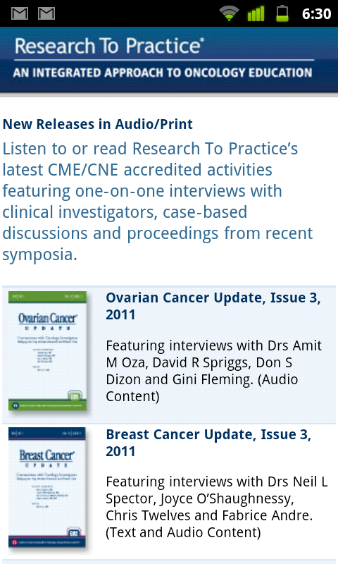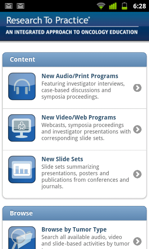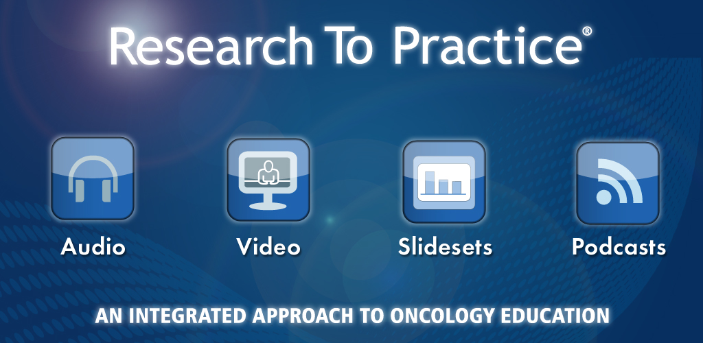 The purpose of Research To Practice is to provide meaningful, high-quality education to physicians in the field of cancer diagnosis and management. Furthermore, it is the specific interest of the organization to create and deliver educational opportunities regarding clinical situations where Research To Practice has identified that a clear consensus among researchers about situations in which "standard therapy" is being under utilized in community practice. As a company specializing in cancer education, we are committed to educating health care professionals about the viewpoints and perspectives of these leadership figures in cancer clinical research so as to provide education that serves to translate research into practice. Furthermore, we wish to integrate the perspectives of community-based physicians and cancer patients into our activities.