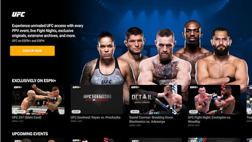 Sign up for ESPN+ and get access to the streaming service that delivers live sports from the best leagues and teams in the world. Get live events from the UFC, MLB, MLS, NHL, international soccer, college sports, and more. Enjoy the complete 30 for 30 library and exclusive ESPN+ Original shows from the biggest names in sports including Peyton Manning, Kevin Durant, Dana White, Matthew Berry, and more all inside the ESPN app.