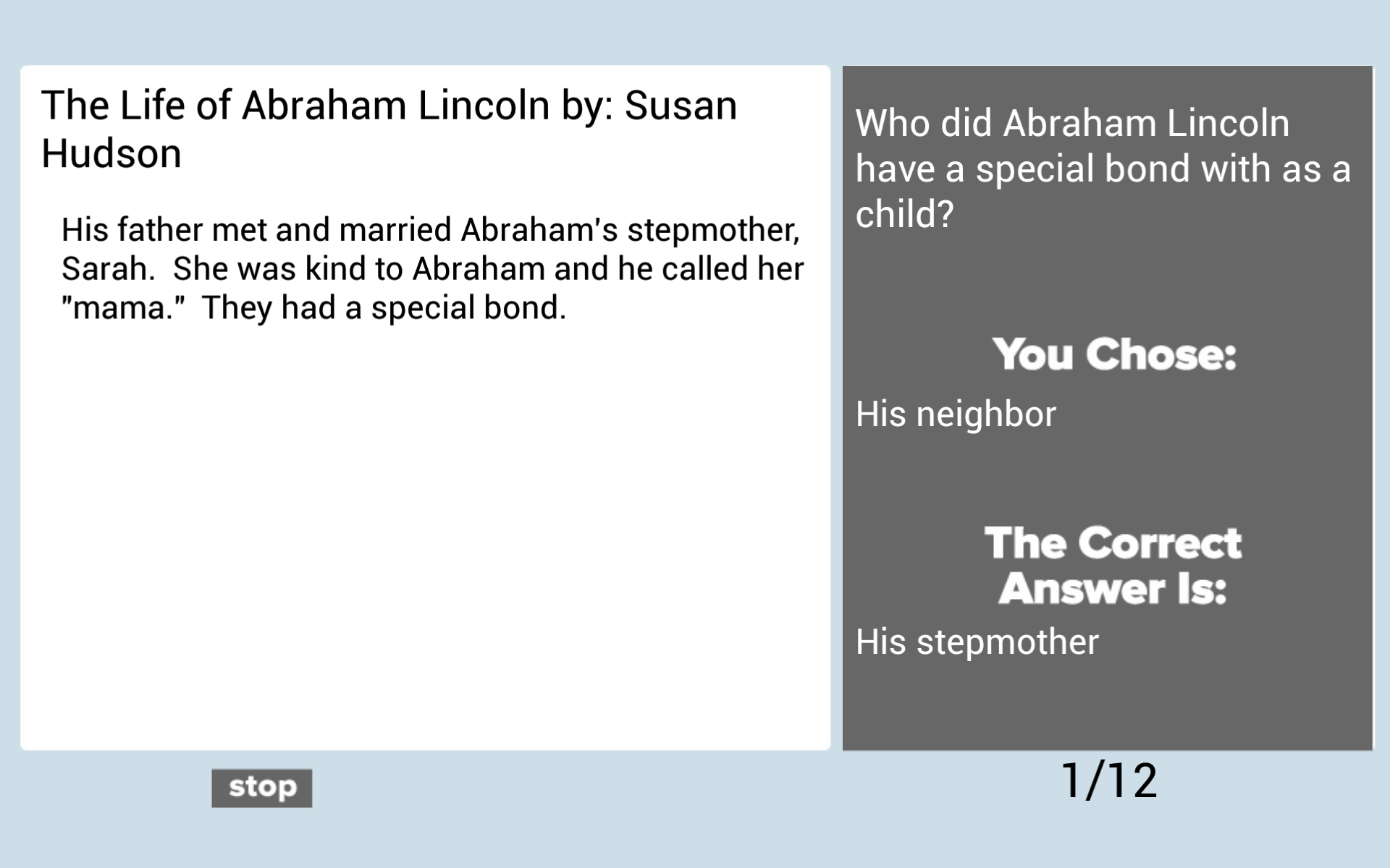 Non-fiction topics included in this app: - All About Bats - The Life of Abraham Lincoln - The History of Video Games - The Appalachian Trail - Predator Insects - The Story of Clara Barton & the Red Cross