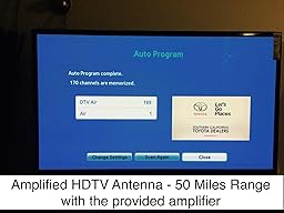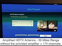 1- Amplified HDTV Antenna - 50 Miles Range without the provided amplifier found = 174 channels.