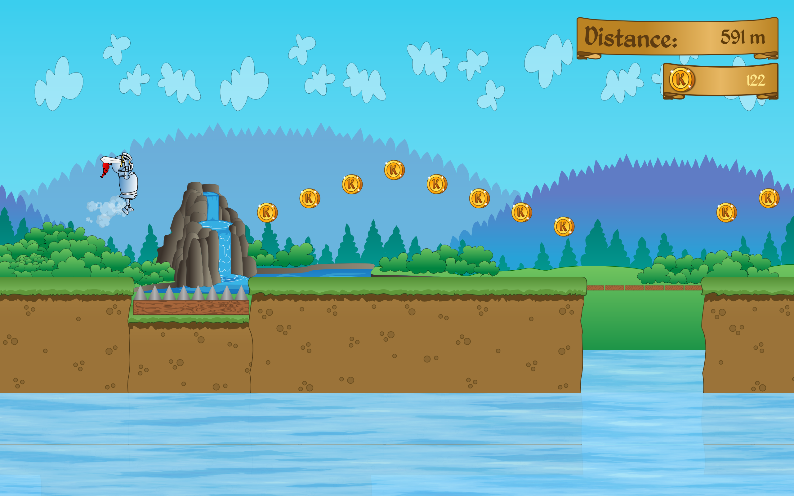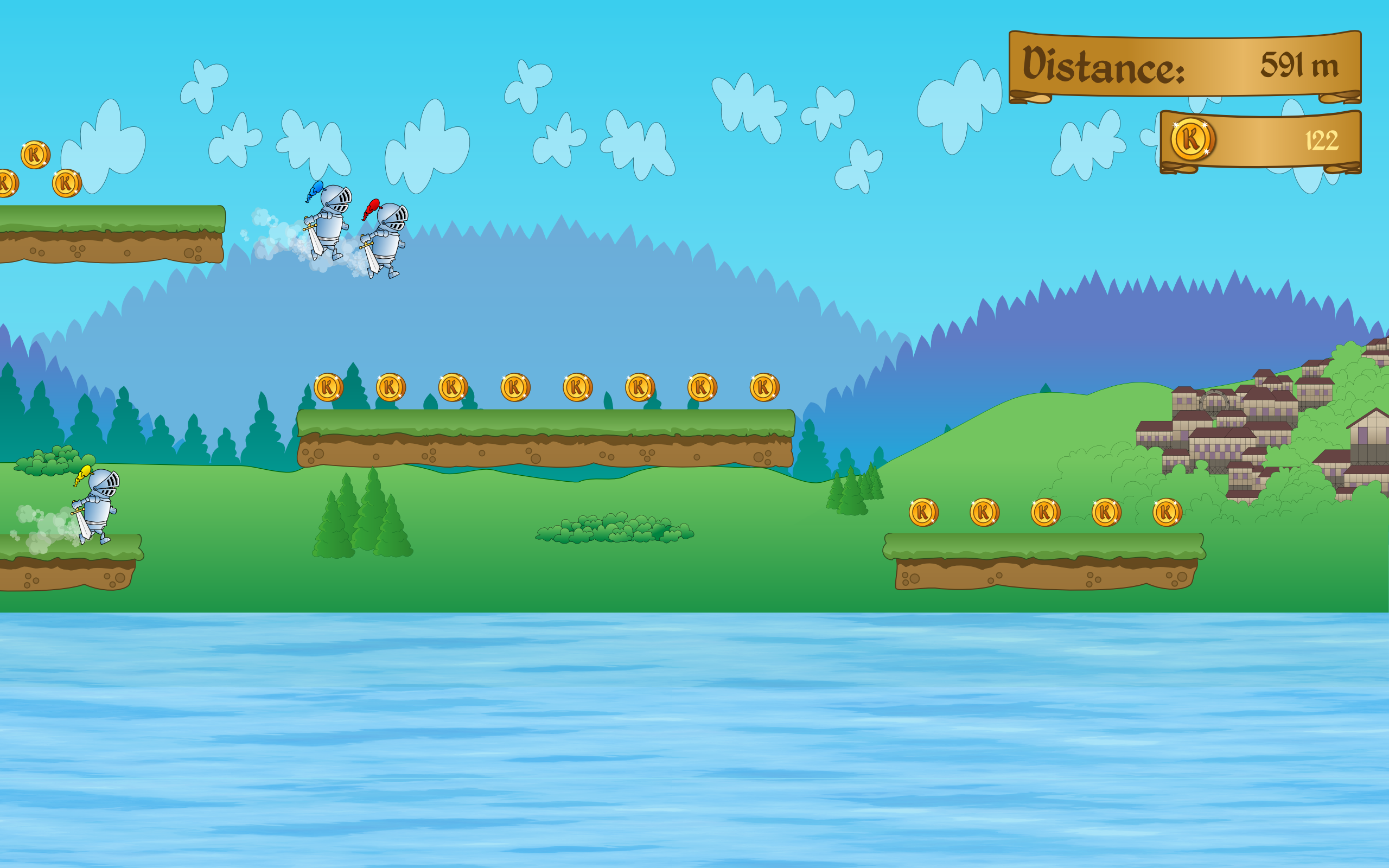 Its funny! Its a platform game and you have to get these knights which move together across water and avoid obsticals, but if you hit something on the way some of the knights will fall off but you can keep going until there isn't anyone left. They jump, kind of flip somersaults, Pretty comical game.