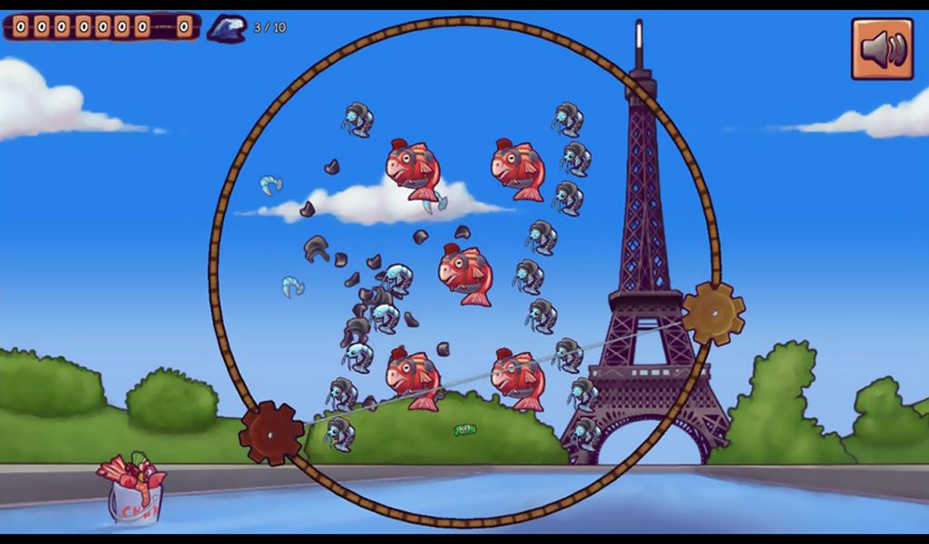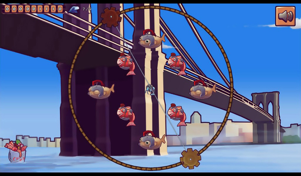 Use your thumbs to control your fishing line, catch as many fishes per wave as you can and watch your high scores steadily increase as you get better! Smarter fish may craft protective gear from the garbage we dump into their ocean, pick at it until it falls off, tow it out of the ocean, and keep that line moving!