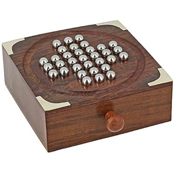 This item Handmade Indian Wooden Solitaire Board Game with Stainless Steel Balls - Travel Games for Adults by ShalinIndia