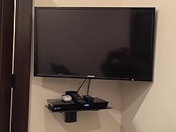I intended to use this for our DVD/Blueray player but we ended up using it for something entirely different. My husband's favorite band is TOOL and he has been wanting a place to display some of his band mementos so this is what we ended up using it for. It was really quick (less than 5 minutes) and easy to put up and the black glass makes it looks really modern. It will hold up to 17 pounds so it's sturdy too. It wipes off easily with a little window cleaner on a cloth and since it's glass you don't have to worry about scratches or splinters or chipping paint like most shelves. If you do use it for a game console or other electronics there is even a place you can put your cords to hide them. I like this so much more than a traditional shelf and even though we didn't use it for it's intended purpose we are super pleased with it.