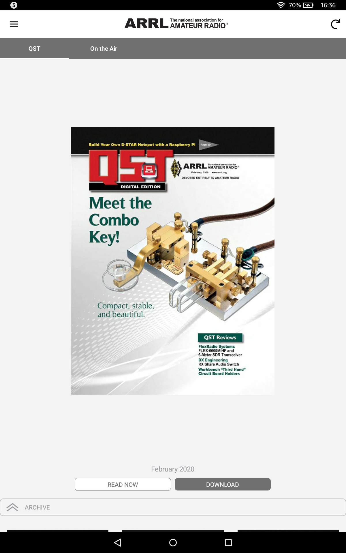 This is the ARRL magazine app to read the online version of it's magazines. It's OK, but a bit klunky. If you have an existing version, then be sure to delete it before upgrading. It seems a lot of bugs develop with an upgrade. I'm also not really fond of the navigation methods. They vary from section to section.