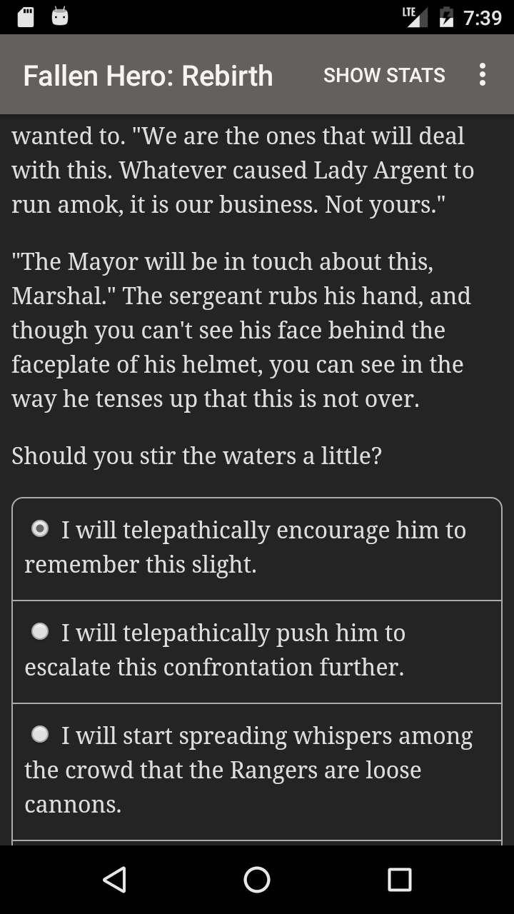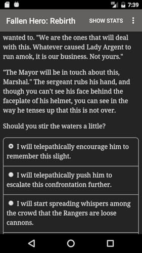 "Fallen Hero: Rebirth" is a 380,000 word interactive novel by Malin Rydén, where your choices control the story. It's entirely text-based—without graphics or sound effects—and fueled by the vast, unstoppable power of your imagination.