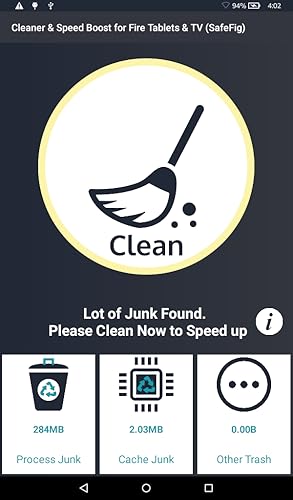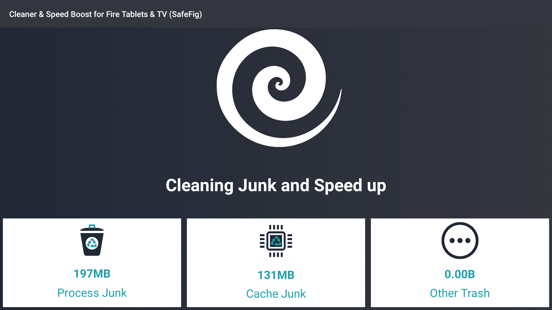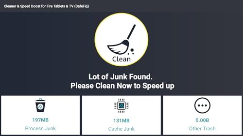 Cleaner & Speed Boost App for Kindle Fire Tablets and Fire TV by SafeFig Team of expert developers and Engineers. SafeFig Clean & Speed Boost cleans out Cache, garbage like log, temp files that can slow down your device. It also cleans and filters out heavy processes that are slowing down your device speed to make your device working faster and smarter.T