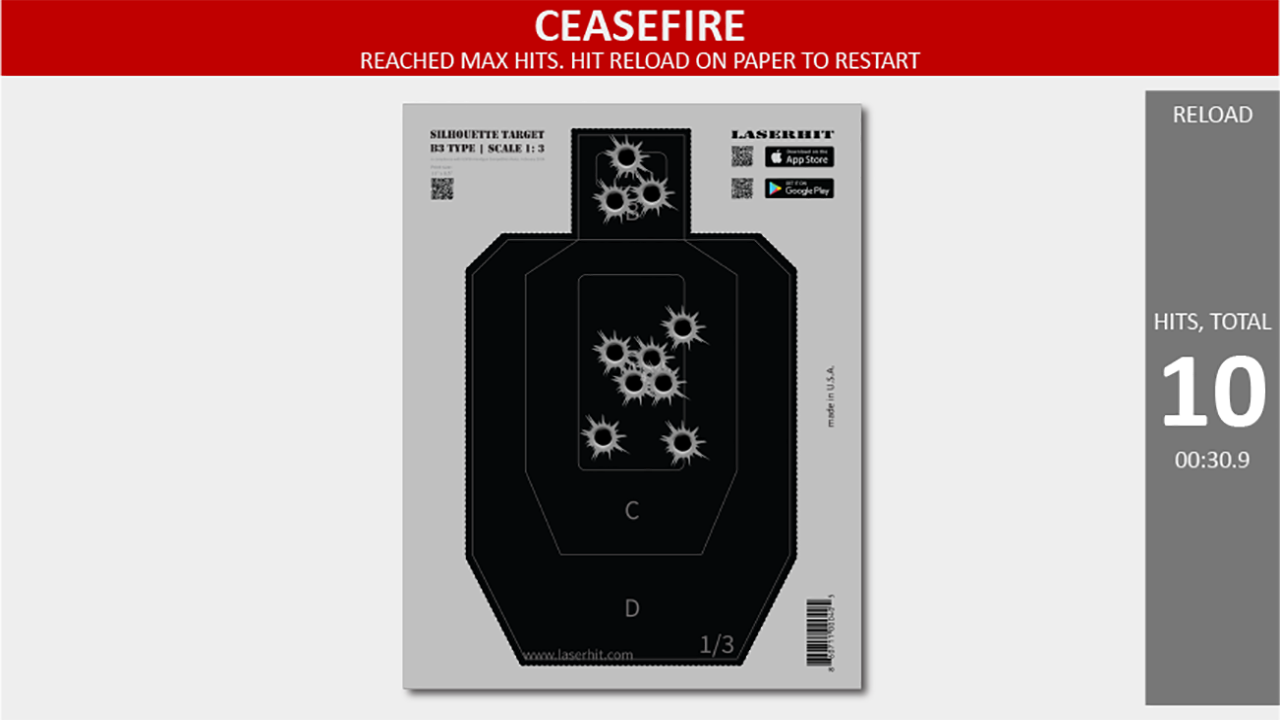 FREE TARGET PRACTICE Practice with your own multiple targets or actual objects. Use augmented reality to RELOAD and reset your practice right from the firing line. Or, use the "old school" way - to walk and tap on the screen to Reload after each session.