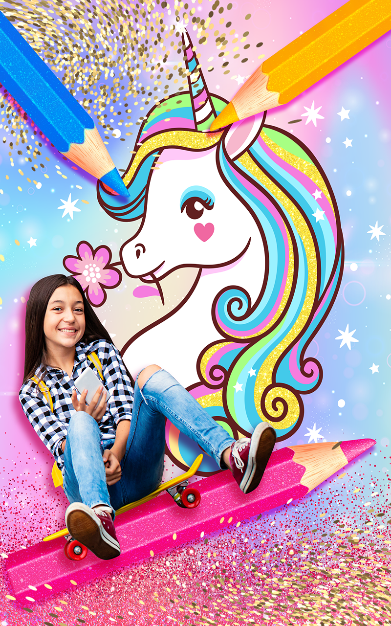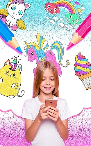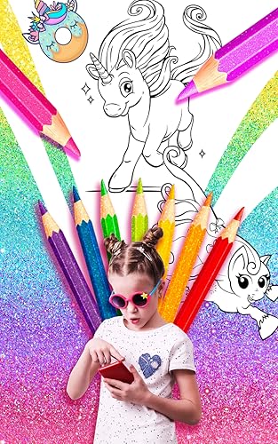 You will love Rainbow Glitter Coloring Book - Unicorn Kids Artist. This Art book is filled with Coloring pages of Unicorns, Rainbow Ice Cream, and other Adorable Unicorn Characters!