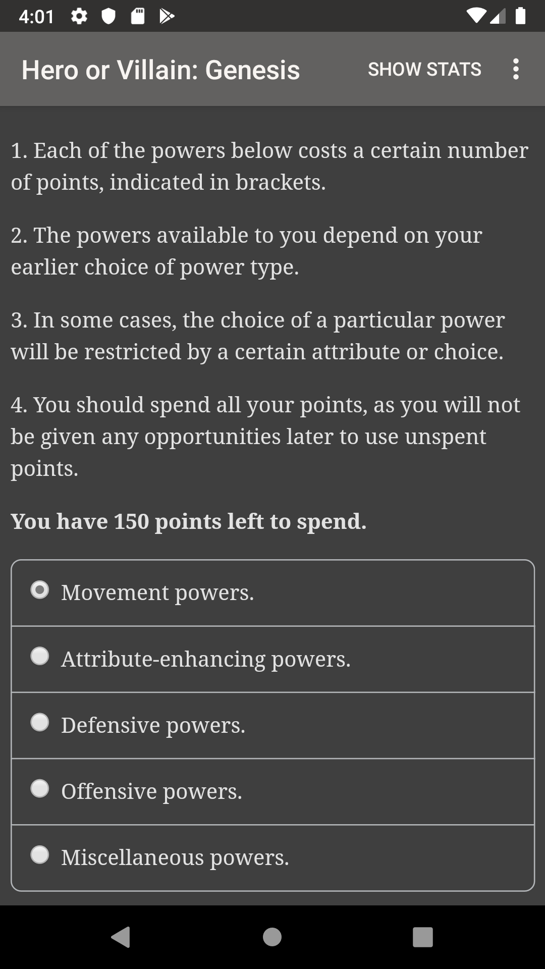 I had mixed feelings when I read about this game. It's a user-submitted game, a "hosted" game, and most of those put out by this company have ranged from forgettable to terrible. But on the other hand it was a superhero game about character customization and giving lots of options to make the character your own, just like one of my favorite "hosted games" from CoG, Community College Hero. And at the risk of getting crucified, I'll say that this ends up being a lot like Skyrim: you can specialize in whatever you want, prioritize whatever you want, be as good or as bad as you want, resolve fights with whatever you want...if you're okay with an underwritten setting and cast of characters.