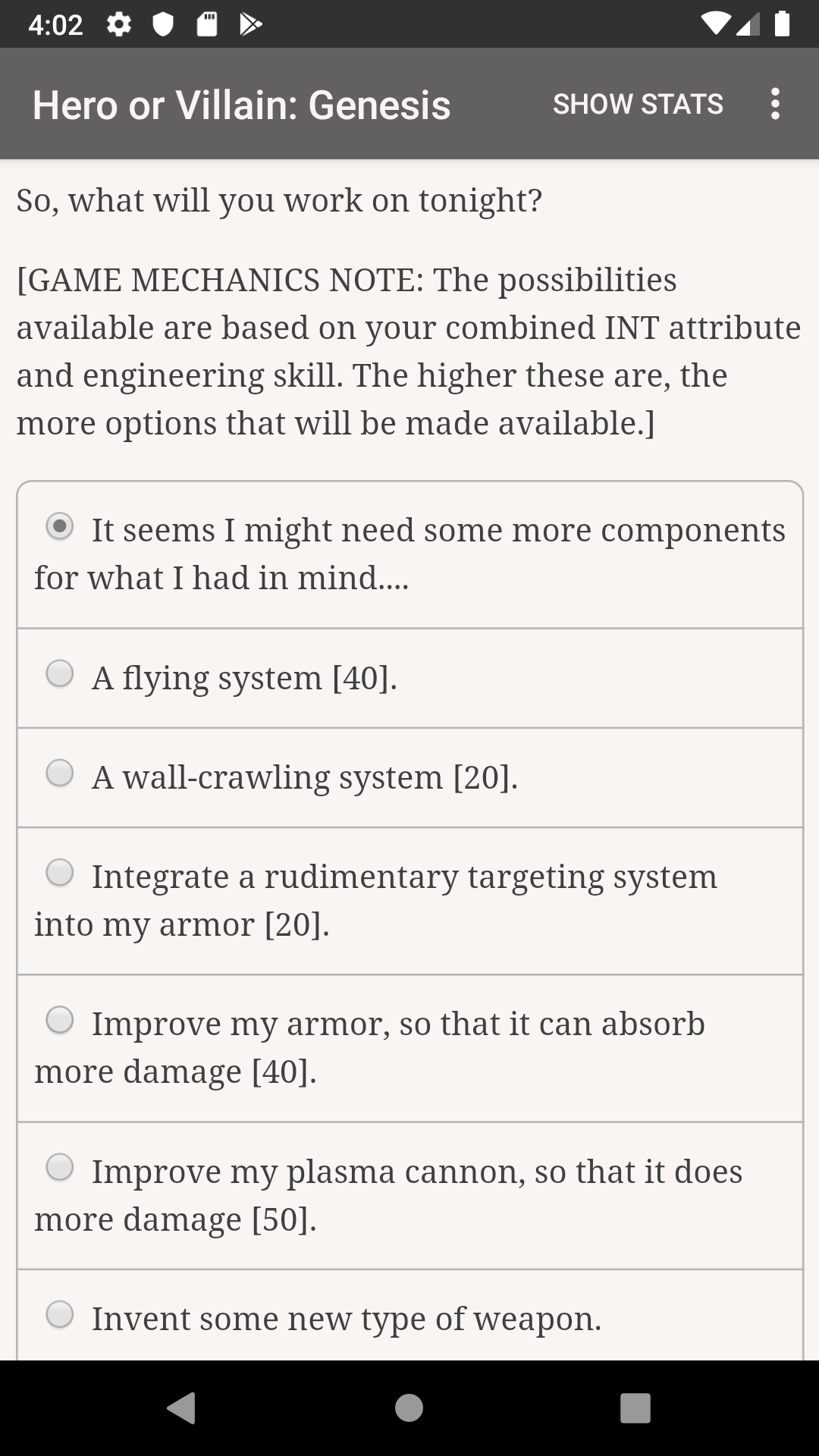 I applaud the author for attempting such an in-depth game, with a system of character options so big it even outdoes the likes of the Lost Heir series. But if it's not done well, it's still not done well. HOVG is still a cut above the usual "hosted games" mess, but I'm still eagerly waiting for the last Community College Hero game only thinking I MIGHT check out the sequel to this game in a few years.