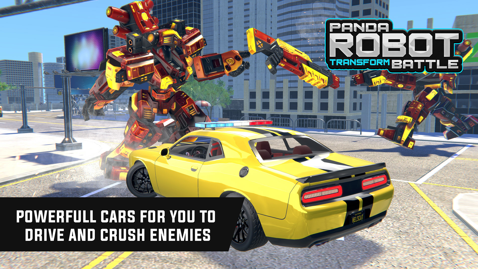 Interesting robot shooting stages in police panda robot transformation: city battle