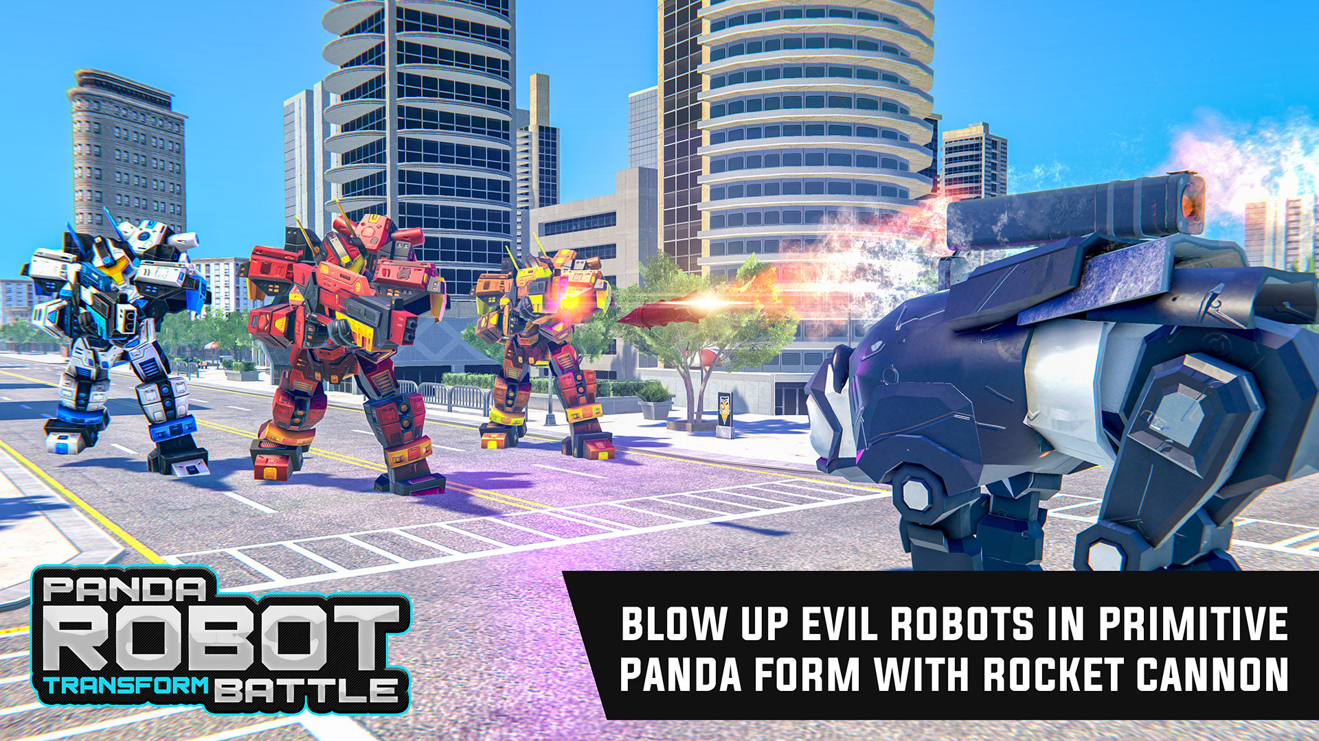 Get ready for robot war in this panda robot transforming: robot shooting games. A sensational police panda robot game where explore the skills of robot transformation by robot attack. Shoot enemies by special guns in police panda robot simulator and finish robot war by transforming into different moves. Addictive robot battle where you have to enjoy police panda robot transform by punch, kick and rolling. Transform into police panda robot and perform different actions. Destroy enemies robots by flying and rolling into balls. Great robot shooting game where you have to play different police panda robot and win the robot war & robot shooting game: city rampage. This police panda robot: robot simulator game is thrilling where you have to attack on enemy robots professionally.