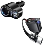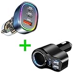 Main Feature Cigarette Lighter Splitter, PD30W Fast Charger for Phones and Tablets, Compact Size Cigarette Lighter Splitter, PD30W & Dual QC30W Fast Charging Simultaneously Without Loss, Angle Adjustable With Retractable Charging Cords, 2.6ft; Keeping Your Car Clean and Organized; 105W Simultaneous Fast Charging Multicolored Light & Transparent Car Charger,QC 30W &Dual PD3.0 Simultaneous Fast Charging Compatible With Phones, Tablets and Macbook, Dual ports simultaneously fast charging, With LED Ring light With 4ft Type C Cable, QC30W & PD30W Fast Charger for Phones and Tablets, Metal Body, Compact Size