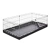 This cage is NOT big enough for a cavy to be in it full time. It's too small and the bottom is too shallow for everything they need - bedding, etc. However, I am relocating 1100 miles soon, and I bought this to provide a reasonably comfortable space for our piggy to get through a long couple of days driving. This will give him enough room to move around a bit but won't take up the entire backseat like his regular cage, so I'll have some leftover room for last minute stuff that can go in the car. I think our little guy is too chubby, so I won't be picking this up by the handle, but it will work well for smaller creatures.